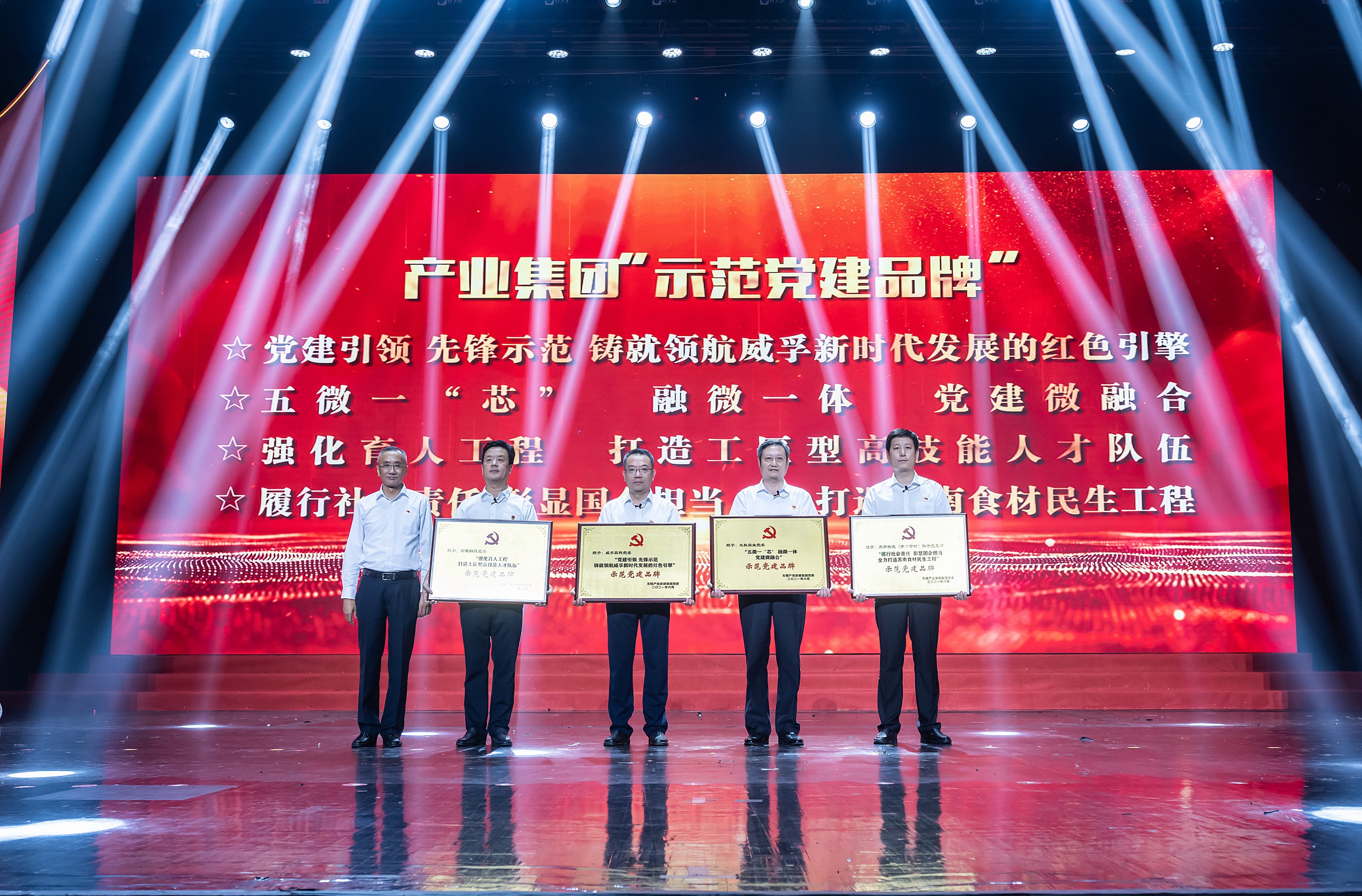 集团在确立24个企业党建特色品牌项目基础上,首次集中发布了“党建引领、先锋示范,铸就领航威孚新时代发展的红色引擎”,“五微一‘芯’、融微一体,党建微融合”,“强化育人工程,打造工匠型高技能人才队伍”,“履行社会责任、彰显国企担当,全力打造苏南食材民生工程”等四个示范党建品牌。在新时代企业发展的新征程中,涌现出了一批勇立时代潮头、敢于担当尽责、作出突出贡献的共产党员时代先锋,集团党委授予罗志坚等9名同志为第三届“共产党员时代先锋”荣誉称号。开展党史知识竞赛决赛,来自集团及各所属企业的9支队伍同场竞技,掀起党史学习新热潮,展现出了集团各级党员干部良好的精神风貌,营造了以赛促学、比学赶超的浓厚氛围。活动现场,集团及各所属企业员工精心演绎了小提琴舞蹈《唱支山歌给党听》、大合唱舞蹈《不忘初心》等精彩的节目,以此歌颂党、歌颂祖国、歌颂社会主义及建党以来取得的辉煌成就。最后,全场与会人员共同高唱《没有共产党就没有新中国》,表达了对党的无限忠诚与热爱,并表示以庆祝建党百年为新起点,进一步坚定理想信念,传承党的优良传统,以史促行、勇担重任,为在新时代推动产业高质量发展实现新跨越建功立业。